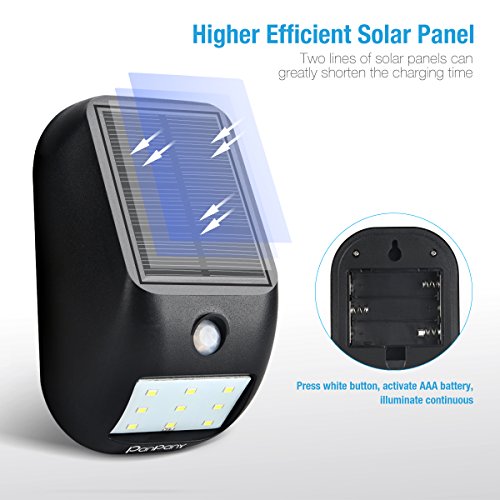 Higher Efficient Solar Panel: Two lines of solar panels can greatly shorten the charging time and absorb solar energy more efficiently to generate electricity for light. When the solar energy runs out or there is no sun, we also support the lamp with AAA batteries.( Batteries not included )