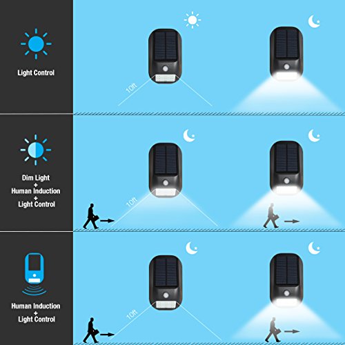 Solar Power Light with 3 Lighting Modes: Light Control, Dim Light + Human Induction + Light Control, Human Induction + Light Control, 3 optional modes for you to choose before install depends on your needs.