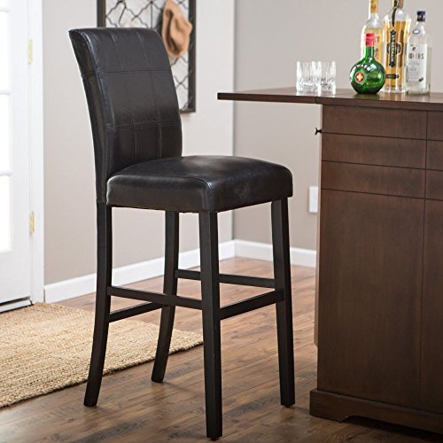 -. Feature : Durable wood legs and frame in rich espresso / Black faux leather upholstery / Stitching detail in grid pattern on seat back / Contemporary style / Dimensions: 18.5W x 19.5D x 49H in.; Seat: 34H in.