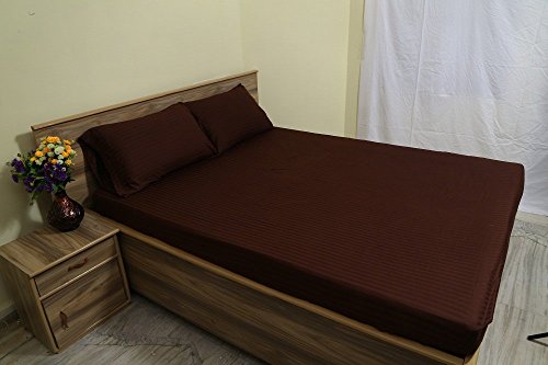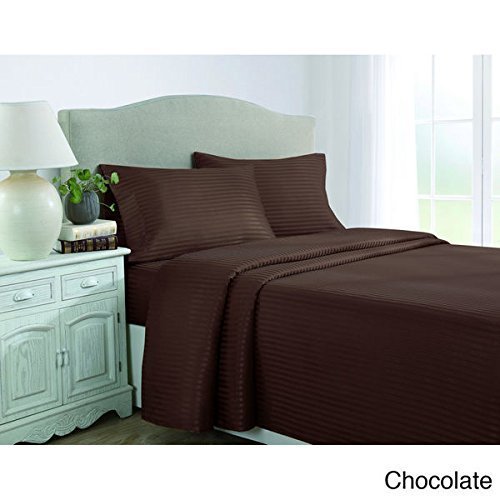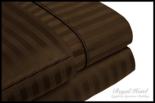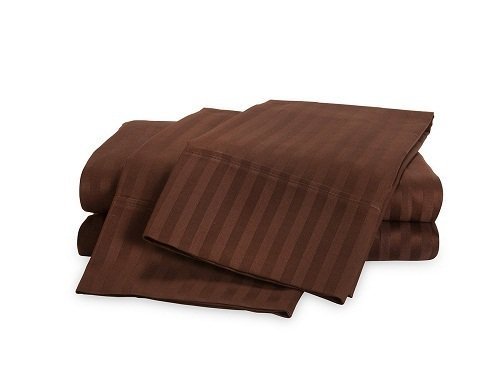 -. Title : Rajlinen Luxury Egyptian Cotton 650-Thread-Count Sateen Queen Sheet Set,Chocolate Stripe Super Soft