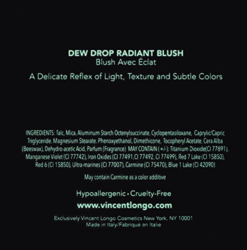 -. Binding : Health and Beauty -. Brand : VINCENT LONGO -. Color : Temple Peach -. EAN : 0658106103134 -. Label : VINCENT LONGO -. Manufacturer : VINCENT LONGO -. MPN : AB-11592 -. PackageQuantity : 1 -. PartNumber : AB-11592 -. ProductGroup : Prestige Beauty -. ProductTypeName : LUXURY_BEAUTY -. Publisher : VINCENT LONGO -. ReleaseDate : 2015-03-04 -. Studio : VINCENT LONGO -. Title : VINCENT LONGO Dew Drop Radiant Blush, Temple Peach -. UPC : 658106103134