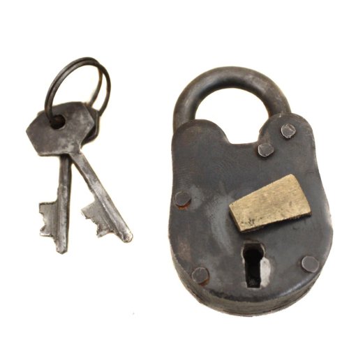 -. Feature : Imported and handcrafted to look just a vintage antique lock / Made of heavy iron / Two (2) metal keys / Functional operational padlock; intended for decorative use only) / Dimensions: 2.5" x 1.5" x 0.75" - 0.4 lbs