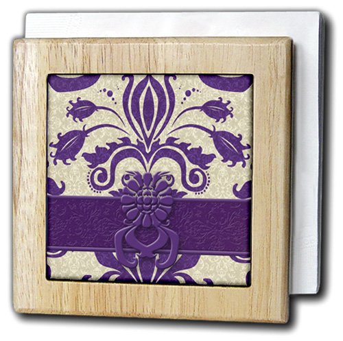 3dRose nh_15454_1 Damask Purple and Taupe Wall Art, Natural