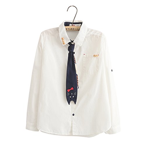 -. Title : レディース シャツ 長袖 おしゃれ かわいい 森ガール 猫 ネクタイ 萌え 白 ホワイト < mikketa オリジナル >