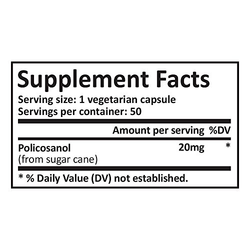Pure Science Policosanol 20mg - Support Cardiovascular Health and Lower Cholesterol Level -100 Vegetarian Capsules
