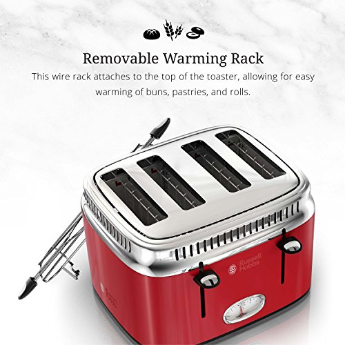Removable Warming Rack - This wire rack attaches to the top of the toaster, allowing for easy warming of buns, pastries, and rolls. Remove for normal toasting.