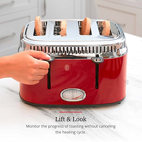 From your gas range to your stainless steel refrigerator you’ve carefully selected every appliance to match your kitchen’s style. Why stop there when smaller details can add the all-important finishing touch? Make your kitchen feel a little more distinguished with the eye-catching Russell Hobbs 4-Slice Retro Style Toaster in our premium polished red finish.
