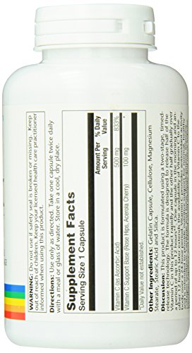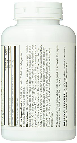 Two stage timed release vitamin C 1000 mg from solaray is unique because each capsule releases half its vitamin C content rapidly after ingestion and the other half over a period of up to 12 hours.