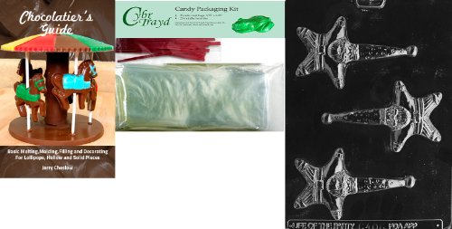 Cybrtrayd Wizard Santa Chocolate Mold with Chocolatier's Bundle of 25 Cello Bags, 25 Red Twist Ties and Chocolatier's Guide