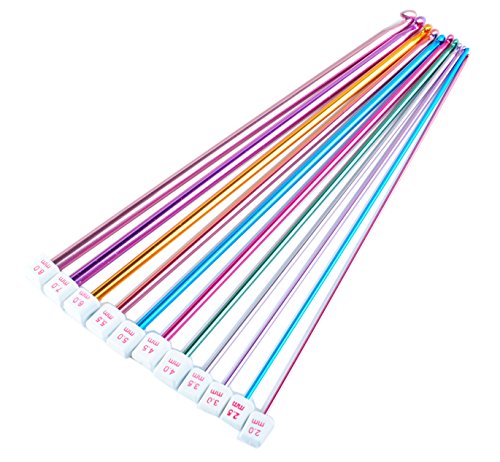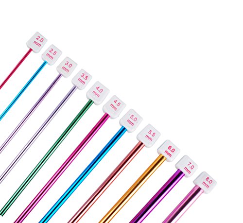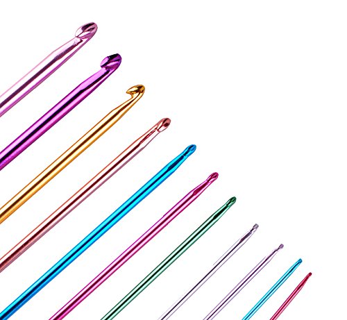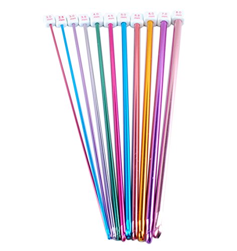 Wadoy Long Tunisian Afghan Crochet Hooks Set 11 Pcs 2-8mm 10.5" Colorful Aluminum Knitting Needles