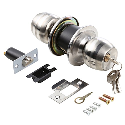-. Title : UHPPOTE Stainless Steel Round Cylindrical Lever Handle Knob Door Entry Bedroom Mortise Lock With Key Assisted