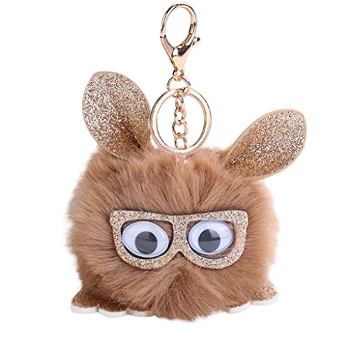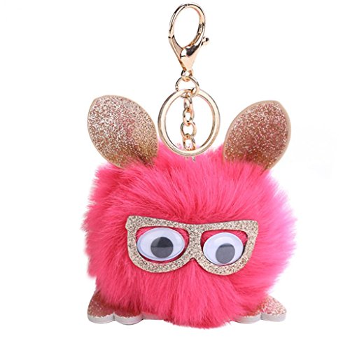| (Minishop659)/Accessories/Wallets, Money Key Organizers/DIRECT FROM USA/Minishop659 Cute Key Chain,Cartoon Owl Wearing Glasses Furry Ball Keyring Women Bag Pendant |