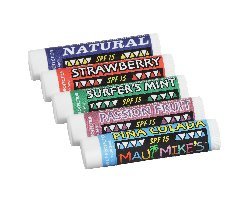 MAUI MIKE'S SPF-15 LIP BALM IN SURFER'S MINT(4 PACK) CONTAINS ALOE VERA, VITAMIN E AND BEESWAX SUN PROTECTION ON SPF-15 to protect your beautiful lips GLIDES ON SMOOTH LIKE THE PERFECT WAVE YOUR LIPS DESERVE THE VERY BEST PROTECTIONFeature