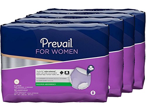 Prevail Maximum Absorbency Incontinence Underwear for Women, Extra Large, 16-Count (Pack of 4)