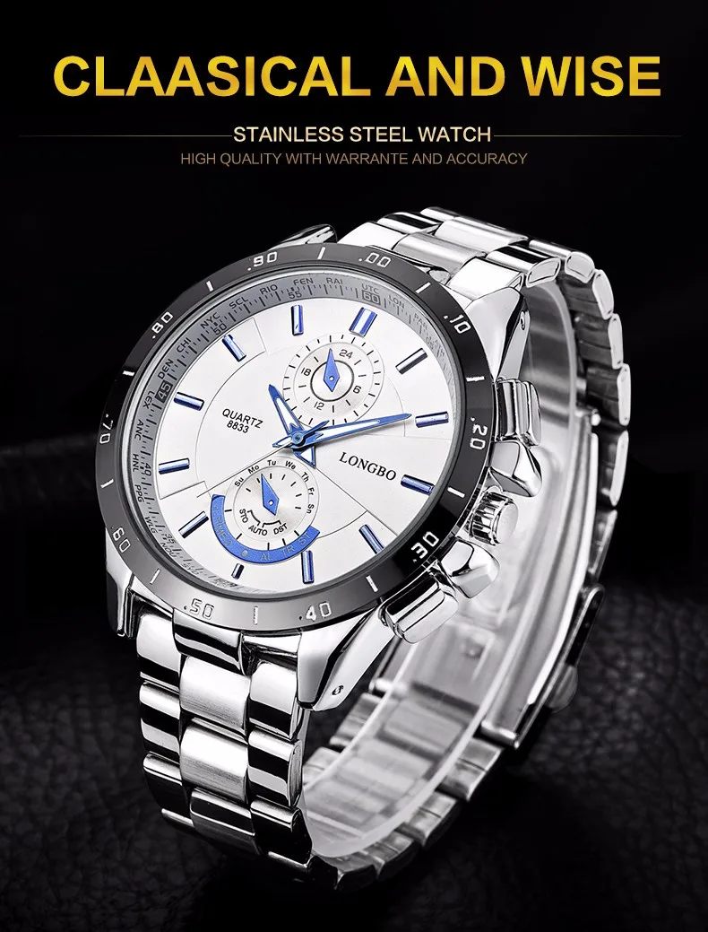 Famous brand business men watches luminous 2016 LONGBO full steel quartz watch men waterproof 30m male clock