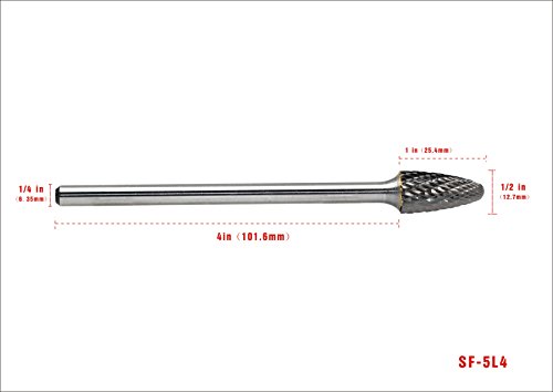 - Shape: Double Cut tree shape with radius end SF-5L4, Size: 4"(101.6mm) Shank length, 1/4 shank diameter, 1/2" cutter diameter, 1" length of cut