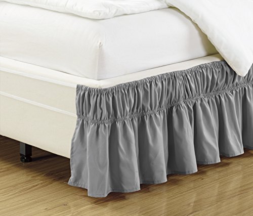 Mk Collection Wrap Around Style Easy Fit Elastic Bed Ruffles Bed-Skirt Queen-king Solid Grey New