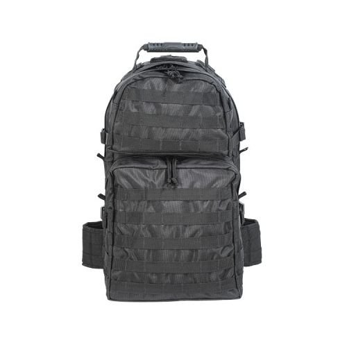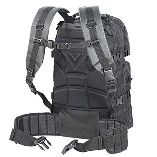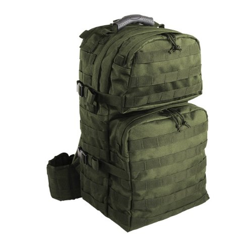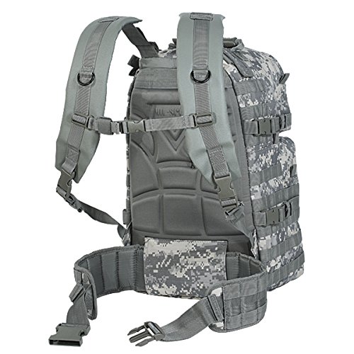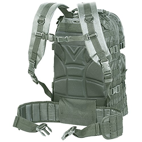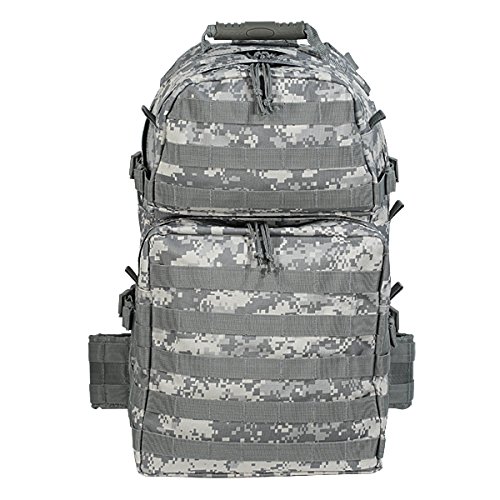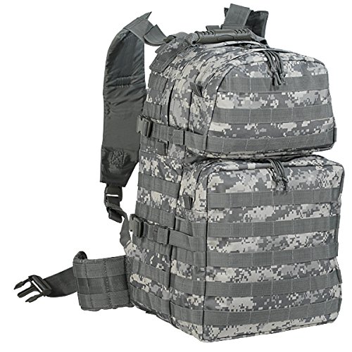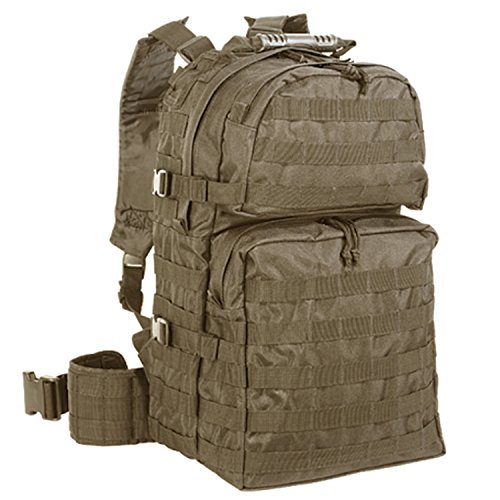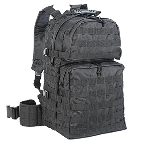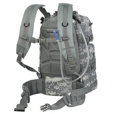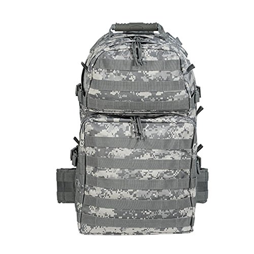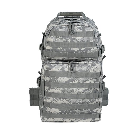 Studio : Voodoo Tactical Publisher : Voodoo Tactical Product Description This MOLLE compatible pack splits the difference between our small assault pack and our larger Tobago bag, providing a good deal of carrying capacity in a straight-forward, comfortable design that maximizes the available volume. At 19" x 15" x 8" with two main compartments and two large pockets, this pack is plenty big enough for most activities in the field. But if you need to haul more gear, you will find it is covered with MOLLE webbing attachment points, or PALs, so that you can add more pouches. It even has them on the bottom so you can attach bedding. The waist belt provides even more attachment points and is perfect for hanging a first aid kit, magazine or other pouches. As you would expect, it has a built in compartment for your hydration bladder (sold separately) and your choice of three hose exit positions. It has a heavy duty rubber drag handle and the back is compression molded and contoured for the maximum comfort against your back. The wide straps are cushioned and offer additional attachment points. Other features include d-rings, removable padded kidney belt with quick release buckle, and fully adjustable contoured shoulder straps. This listing is for the camo pack. T 0
