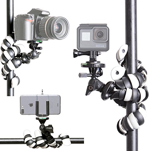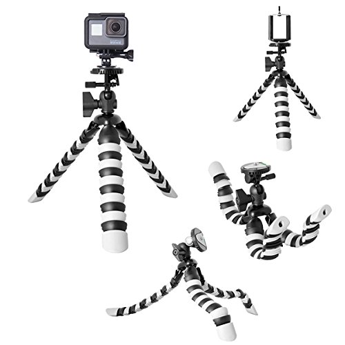 MORE THAN A TRIPOD: Octopus Style tripod, it is a versatile mini tripod, adjustable flexible & wrappable tripod legs, which perfectly embodies both maximum flexibility and sturdiness. It's not just an excellent tripod on flat surface, you can also wrap it anywhere you can think of, like lampposts, fence posts, tree limbs, chairs, doorknobs etc. It's a perfect grip when folded as well. Folded Height : 11"