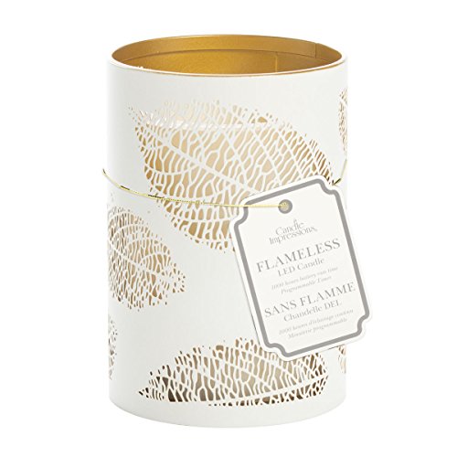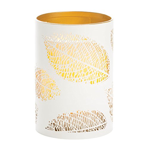 Candle Impressions CAT12451WH Laser Etched Leaf Design Metal Luminary, 3.5 5-inch, White/Gold