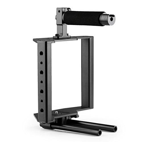 Movo Photo SCG-30 Universal Aluminum DSLR Camera Cage with Top Handle, Shoe Mount and 15mm Rods