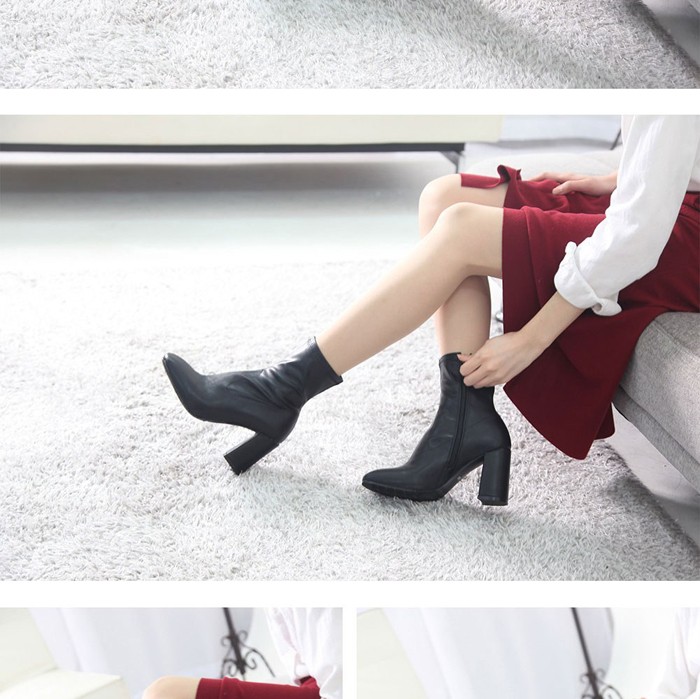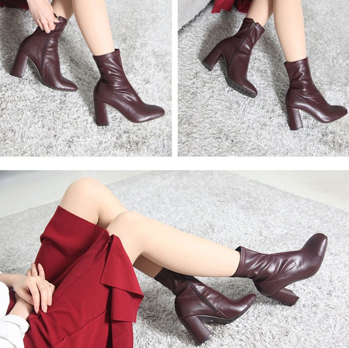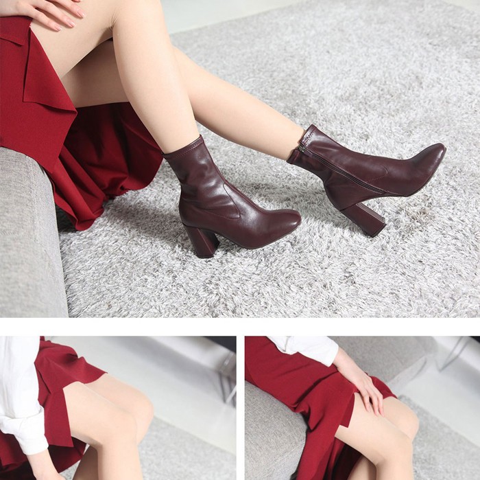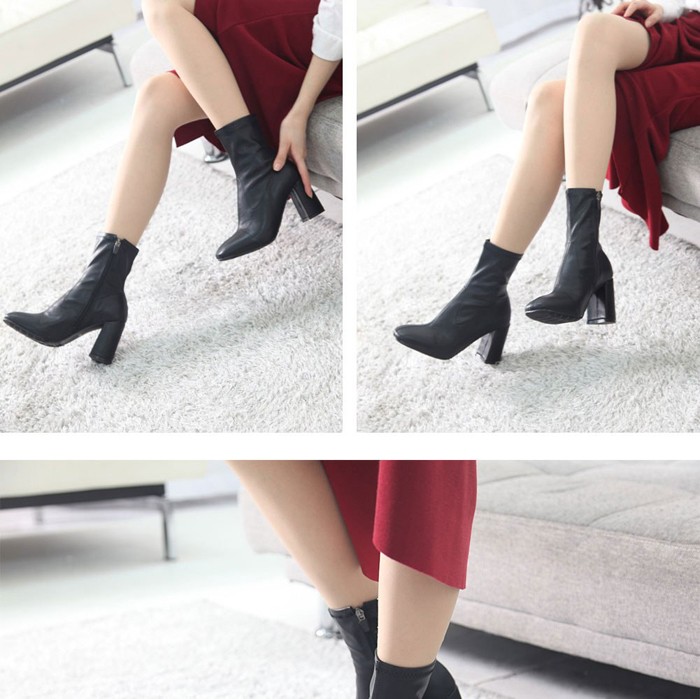 商品名:ストレッチブーツ レディース チャンキーヒール 太ヒール 2017 秋冬 ファッション 靴 婦人靴