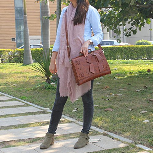 -. Brand : ECOSUSI -. Color : Brown -. Feature : Made from soft faux leather, gold-tone metal hardware and fabric lining / Vintage hollow outer design, magnet button and zippered top closure / Interior pockets give plenty of space to organize all your favorite accessories / Dimension: 13.5"(L) x 3.5"(W) x 10.5"(H), a main compartments for A4 books / Adjustable and removable shoulder strap, it can have 3 carrying options (shoulder bagr,cross body and tote carry) -. PackageQuantity : 1 -. ProductGroup : Apparel -. ProductTypeName : LAGE -. Size : Large -. Title : Ecosusi Vintage Women Faux Leather Messenger Satchel Bags