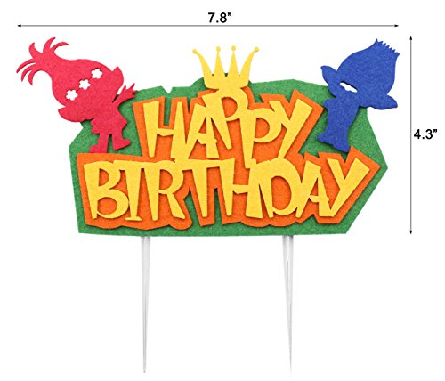 Happy Birthday Topper Dimensions: 7.8" x 4.3"(L*H). It fits 6 to 10 inches birthday cake. Small Characters Toppers Size: 1.6" x 3"(L*H), can be used for cupcake or birthday cake decoration too.
