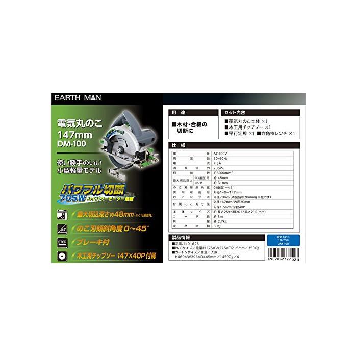 원본상품명:高儀 EARTH MAN 電丸のこ 147mm DM-100