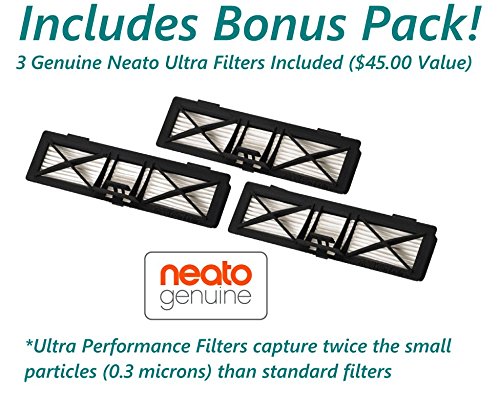 - This BONUS PACK ($45 value) D80 Includes 3 Genuine Neato Ultra-Performance Filters which capture TWICE the small particles over standard filters (down to 0.3 microns)