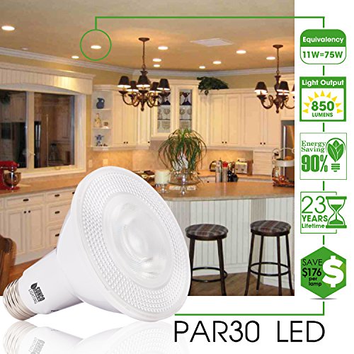 Studio : Sunco Lighting Publisher : Sunco Lighting Product Description ~Product Specifications~ - Base Type: E26 - Dimmable : Yes - Color: Soft White 2700K - Luminous Intensity: 850lm - Watts: 11W - CRI: 80 - Voltage: 120V - Incandescent Equivalent: 75W - Certifications: UL ENERGY STAR ~Description~ 1) This High Power PAR30 LED, offers a market leading 850lm output and is perfect for areas where a brighter light is needed. 2) A green product that saves energy, helps our earth, and lowers electric bills. 3) The powerful light output and beam angle make it perfect for all manor of uses in the home, including lighting rooms that have slightly taller ceilings than most. 4) In comparison to other LED bulbs available, the slightly wider beam angle and 850lm output will ensure the bulbs packs enough of a punch to reach floor and work surface level, even when placed in a higher ceiling 5) This retrofit LED bulb fits straight into most existing fittings but please refer to the listed specifications should you wish to double check the LEDs fitting size. Why Buy yourself a LED Bulb 1) LEDs have great advantage of thermal resistance, larger cooling area, better lighting effect and high light efficacy. 2) High CRI (Color Rendering Index) means that the LED is emitting more of the color spectrum than typical LEDs do, Your typical bright-blue tint LED drops red, orange and aqua wavelengths, but modern high CRI emitters do a better job of outputting the entire spectrum 3) Proprietary Optics Lens enabling glare-free uniform lighting for all working environments 0