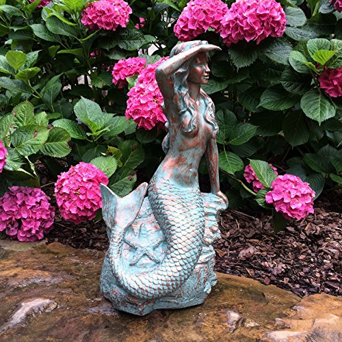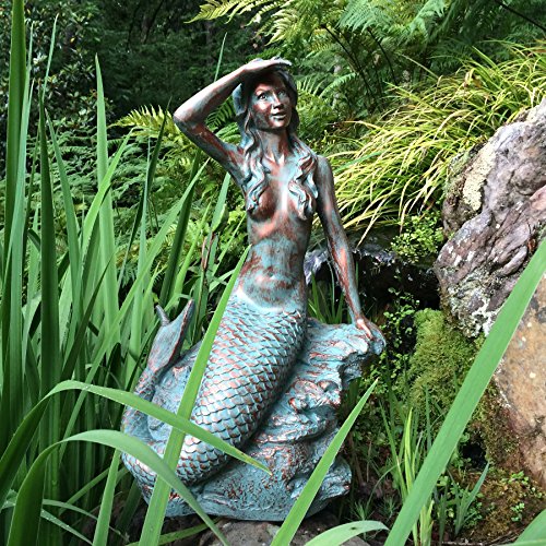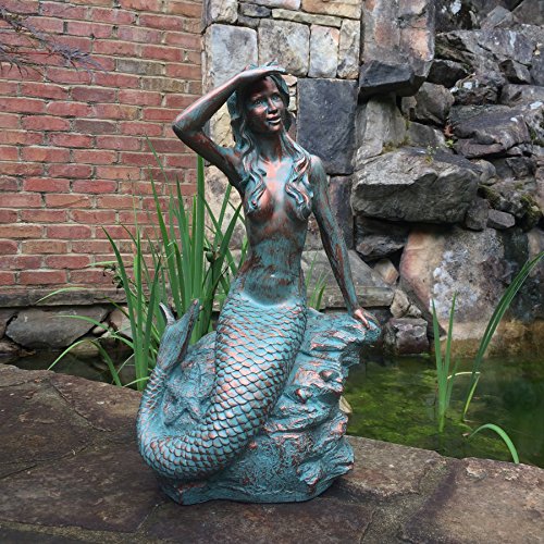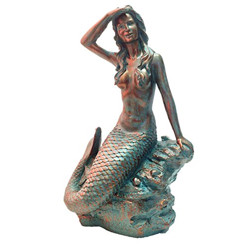 HomeStyles Medium Classic Beach Mermaid on Rock 99371 Bronze Patina, 23"H