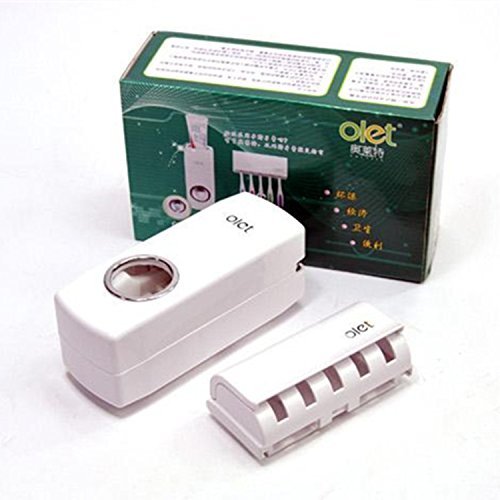 Studio : OEM Publisher : OEM Binding : Kitchen Product Description Specifications: Toothpaste Dispenser: About 60*50*155 mm Brush Holder: About 115*30mm*50mm Material: ABS Plastic Weight:290g No batteries required All Come with 3M double-side stickers. The holder can simultaneously released 3-5pcs toothbrushes. One-touch automatically squeeze appropriate amount of toothpaste Hygienically Brushing your tooth in bathroom Vacuum technology Pump out last drop of toothpaste to avoid waste of toothpaste Operation Instruction: 1.Peel off the stick paper and mounted it onto wall or mirror. (Please install the toothpaste after the dispenser is mounted for 24 hours.) 2.Take off the top cover then load toothpaste tube into the pump and make sure it is installed well without shaking. 3.Lining with the back cover and put back the front cover. 4.Place the toothbrush in the trigger position and push backward Package Includes: 1 x Automatic Toothpaste Dispenser 1 x Free Brush Holder Set ( Brush not included ) Own this dispenser, much more convenience your family shall enjoy! QA 1.Why there isn't any toothpaste coming out? Please make sure the toothpaste is installed tightly and not a nearly empty one. Or you could try to reinstall the toothpaste tube and push the trigger to empty the air first. 2.Why the tape couldn't hold the dispenser to the wall for long or come off right away? Please install the toothpaste after the dispenser is mounted for 24 hours. 3.How to squeeze out a nice amount of toothpaste? Push the trigger to the end with toothbrush for the most toothpaste otherwise backward for less toothpaste. 4.How to clean it after it is mounted on the wall? Please take off the front cover, pump and trigger to rinse. Then use a wet cloth to wipe inside the back cover.