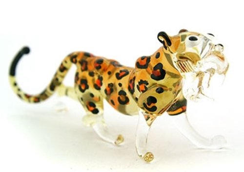 Lampwork COLLECTIBLE MINIATURE HAND BLOWN Art GLASS Cheetah Tiger, size S FIGURINE