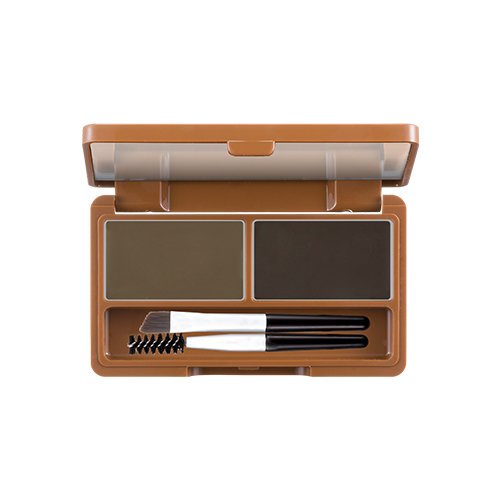 Diagonal cutting brush and scres brush contained for easy eye brow drawing.