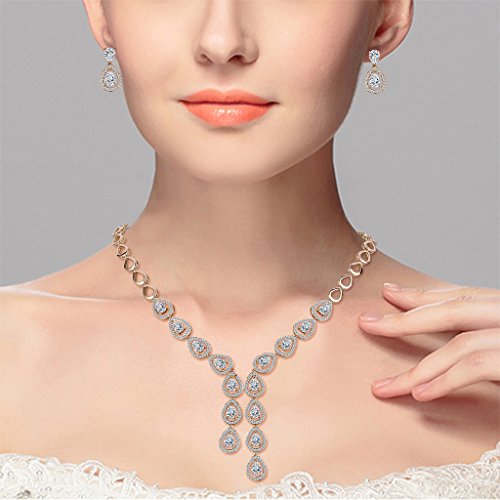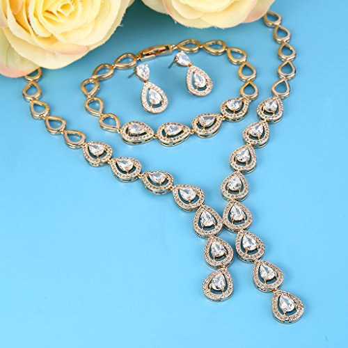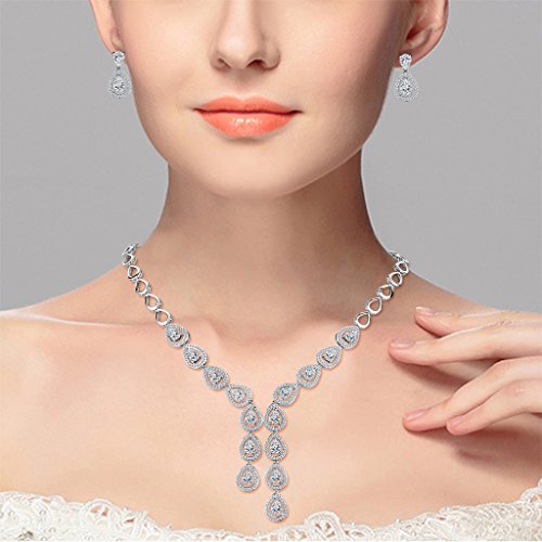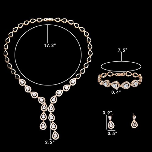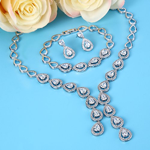 -. Title : EleQueen Women's Silver-tone Cubic Zirconia Teardrop Bridal Y-Necklace Bracelet Dangle Earrings Set