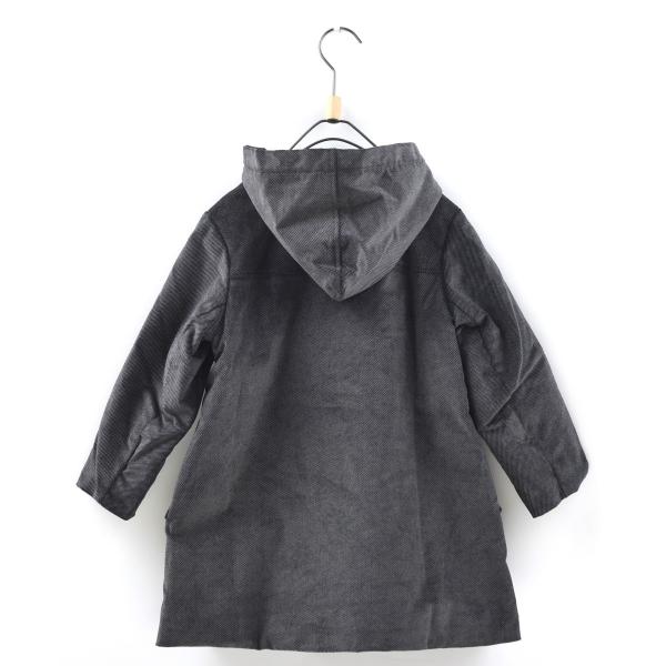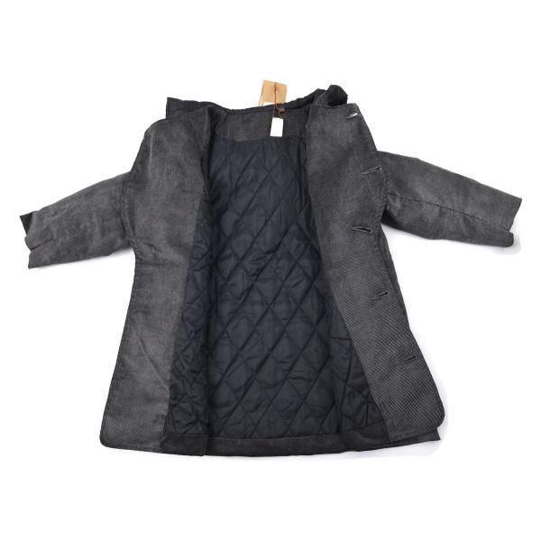 総裏 裏地はキルティング カラーブラック 長袖 ロング丈 ポケット付き 釦あき  男の子 子供服 キッズ アウター 冬服サイズ(cm)着丈/身幅/肩幅/袖丈 110cm 58/79/32/37120cm 61/82/33/40130cm 64/85/35/43140cm 67/88/36/46150cm 70/91/38/49地はキルティング トッグルあき(スナップ釦付き