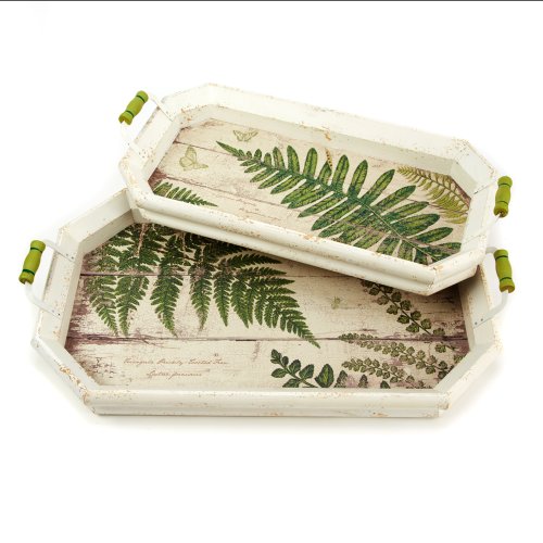 Two's Company Ferns Decorative Trays with Distressed Finish, Set of 2