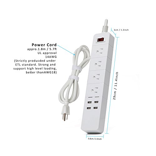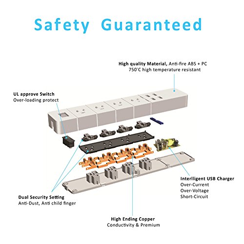 Safety Guaranteed: 100% big Copper Wrie One power switch,USB power LED,Fireproof Materials.Power stripe was certified by ETL, CETL, FCC, CE, RoHS certified and built-in adopting anti-fire ABS+PC materials,the quality and performance are fully guaranteed.