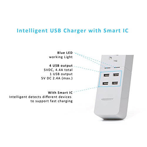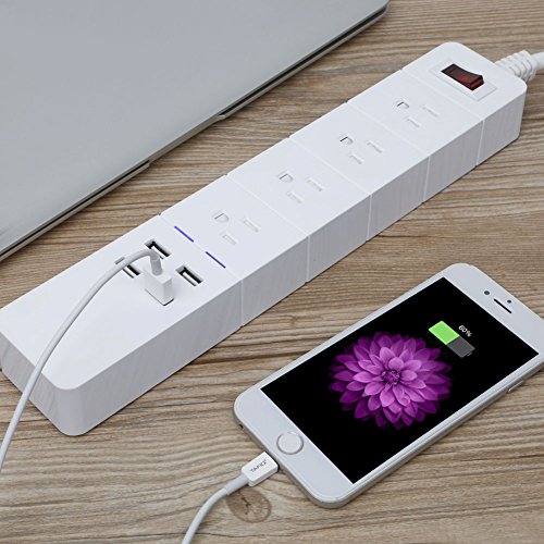 4-Port USB Power Strip Quick Charge : Fast and efficient charging for up to 4 digital devices simultaneously. The USB ports that can intelligently detects your device to deliver the fastest possible charge speed up to 2.4 A each port. Can simultaneously charge up to mobile phones, tablets, e-readers, MP3 players, and other USB powered devices.