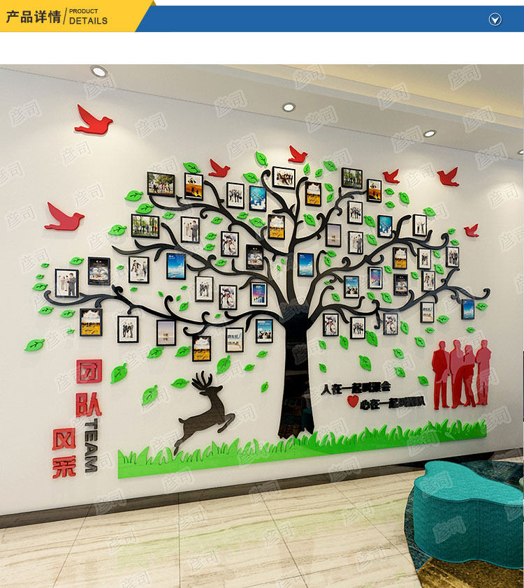 相片墙办公室装饰贴画团队励志3d立体亚克力墙贴公司企业墙面贴纸