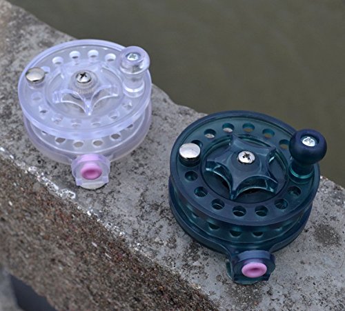 -. Feature : Ergonomic Smooth Drag: Star-shaped drag knob for easy and quick to adjust. Roller bearing allows the drag to engage in two way directions, accurate click drag and silent retrieve. / Spool Diameter: 6CM/2.36INCH; Line Capacity: Line No.3/100m. / Material: Made of high quality plastic, transparent, sturdy and durable. The fishing line outlet hole is made of ceramic guide ring, high hardness, smooth and will not damage the fishing lines. / Metal Fishing Reel Seat & Convertible Handle: This fly reel is suitable for most fishing rod seat, and the handle is left/right interchangeable.