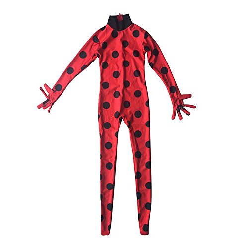-. Feature : Super comfortable material:96% Polyester, 4% Spandex. / 5pcs/lot(Jumpsuit+wig+mask+small ladybug bag+small gift). / Ladybug Girl costumes set for Halloween,Christmas ,Bday(birthday) Kids girls Clothing suit set,it has Jumpsuits and mask and wig and small ladybug bag. Girls Dresses Street-wear with is Red and features black polka dots, long sleeves, and stirrup legs. / Suitable for 3-10 years old and height in the 100-140 cm tall girl wearing.First turn your daughter's height into centimeters, Refer to the size table: S(for the height 105-125 cm),M(for the height 125-135 cm),L(for the height 135-145 cm) / Let your daughter dress up like one of her favorite heroes, and watch her face light up with an excited smile!