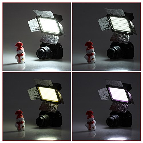 - Feature : Consist of 160 micro LED bulbs, high power and low heat output. / Designed with adjustable barndoor and DC interface.Adjustable barndoor provide different lighting effects, and it would provide the best spotlight when the angle reaches 30 degrees. / Height adjustable: Max 75"/190cm; Min height is 26"/66cm. / Compatible for Sony, Canon, Panasonic, Hitachi, Samsung and many other digital cameras of the similar size. / Kit Includes: (2) W160 LED barndoor video light, (2) color Honeycomb Gel, (2)190cm Photography Back Light Stands