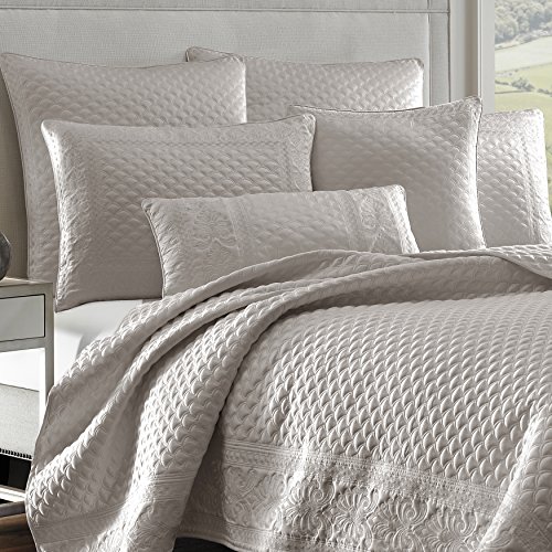 ReleaseDate : 2017-07-03 Studio : Five Queens Court Publisher : Five Queens Court Binding : Kitchen Product Description Add some luxury and update your bedroom with this modern yet traditional Zarah quilt/coverlet. The coverlet's fabric is a matte satin which adds slight sheen to help any bedroom become more noticeable. Available in four complimentary different color ways: White, Pearl, Taupe and Silver. This machine quilted design is bordered with an elegant foulard and damask embroidery, mitered at the corners and edged with a 1/4"self-piping. Available in Full/Queen size 90 x 90 and King size 108 x 94. 0