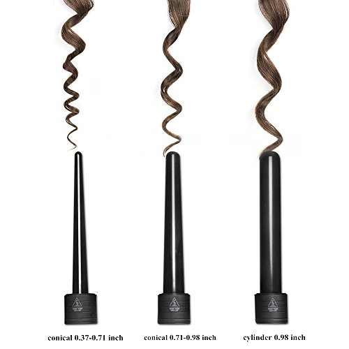 - ★Curling Iron Set for 3 Barrels: Cylinder 0.98 inch,conical 0.71-1 inch, conical 0.35-0.71 inch.Different size can make different hair style, like corkscrew curls, waves, big curls for body and bounce and ringlets.