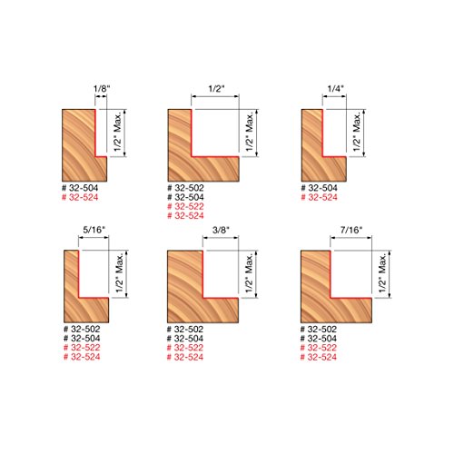 Freud Rabbeting Bit with Bearings for Multiple Depths (flush, 1/8",1/4", 5/16", 3/8", 7/16", 1/2") with 1/4" Shank (32-504)