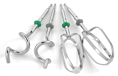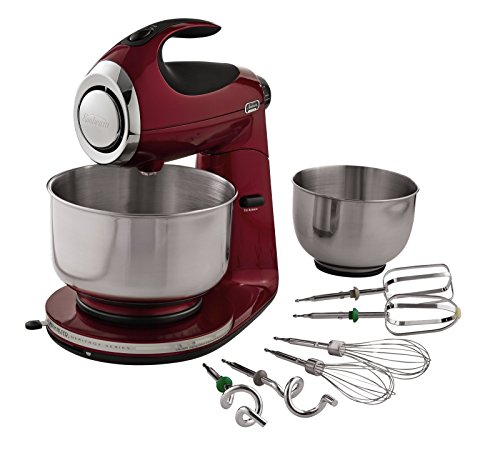 12 variable speeds allow soft start ensuring superior control regardless of mixture;3-way mixing action; synchronized bowl and beater automatically increases and decreases speed with adjustment of the control knob;350-watt motor and full die cast metal body combined with non-skid rubber feet keep the mixer completely stable during operation;Off-center bowl position lets you add ingredients while in use and results in less scraping;Bundle Includes: Stainless steel 4.6-quart mixing bowl, stainless steel 2.2-quart mixing bowl, Chrome beaters, dough hooks and whisks
