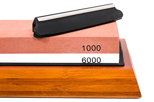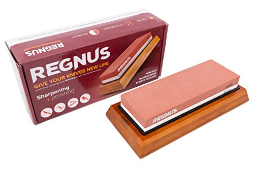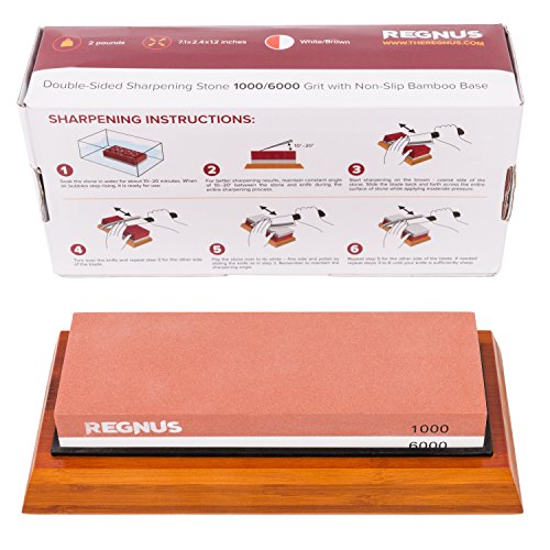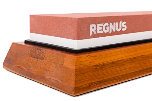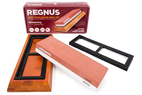 Knife Sharpener - 1000 / 6000 Double Sided Combination Sharpening Stone with Non-slip Bamboo Base - Also for any Blades, Razors and Scissors by Regnus