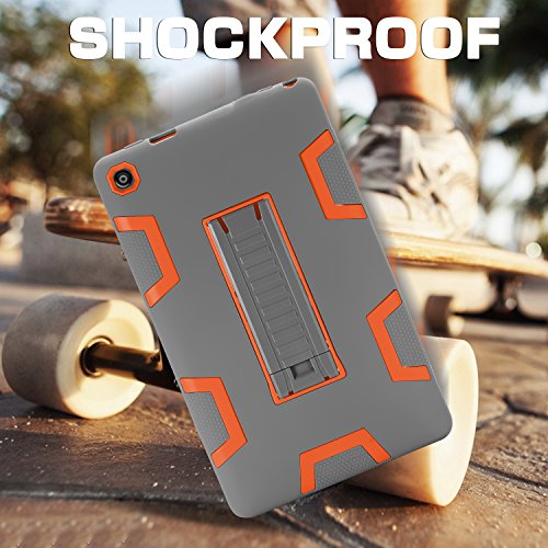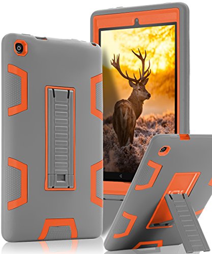 TOPSKY Case For All-New Amazon Fire HD 8 2016 (6th Gen),[Kickstand Feature],Shock-Absorption / High Impact Resistant Armor Defender Case For Fire HD 8 Tablet (6th Gen, 2016 release), Grey / Orange
